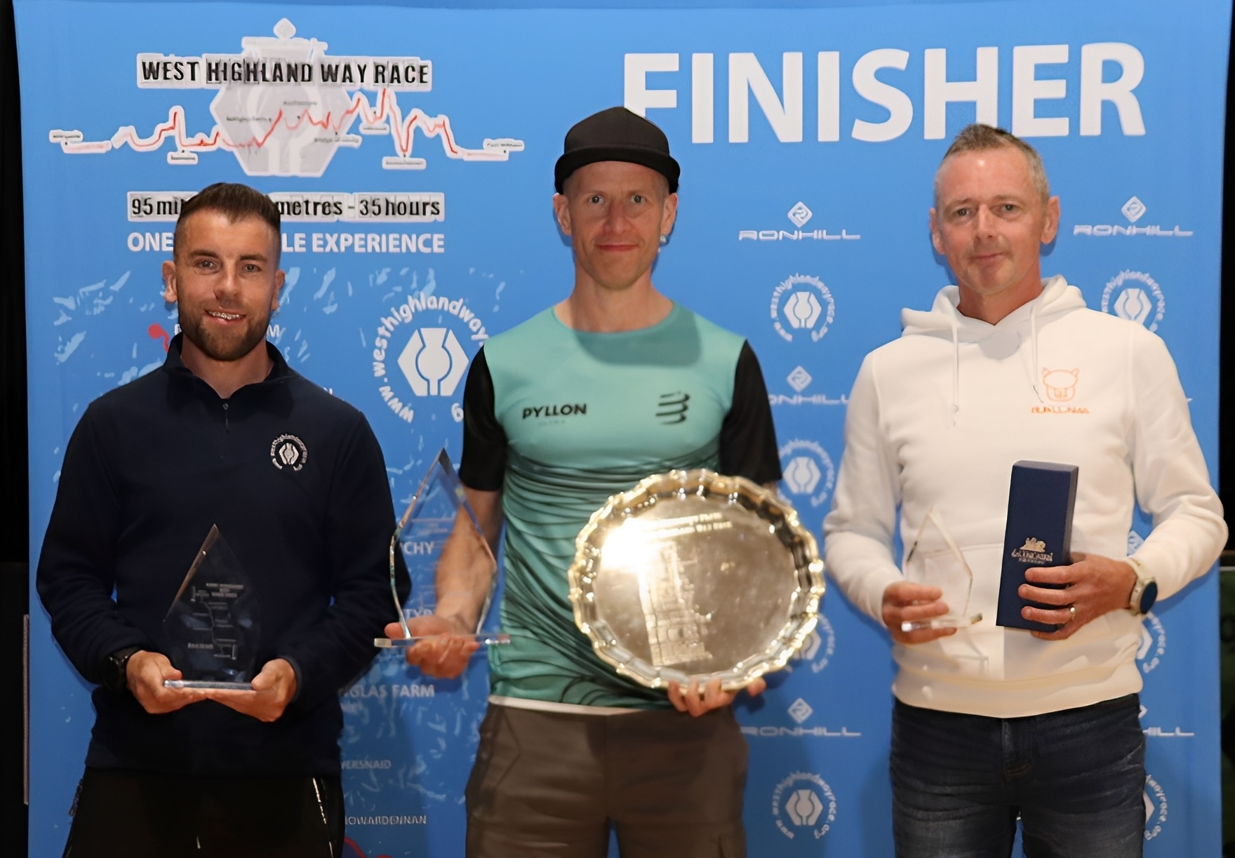 The last finisher was Jordan Hunter in 34:31:06, just 29 minutes inside the cut-off. in the tradition of the race , winner Gus Irvine was asked to present Jordam with his Goblet,